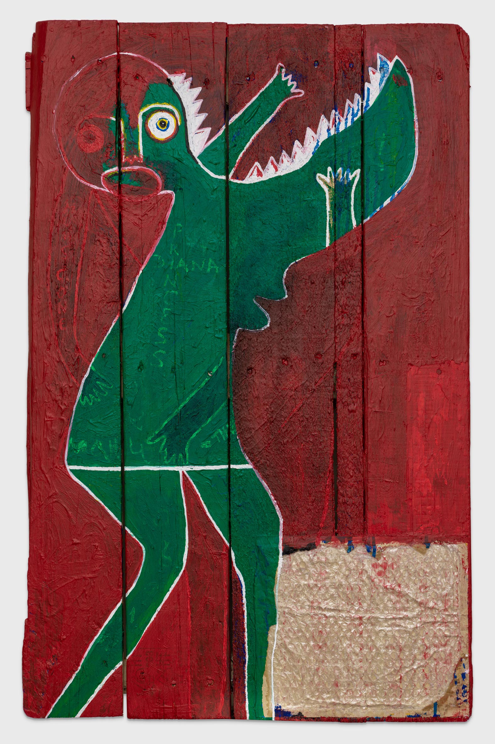 mixed media on found wooden board